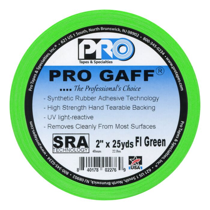 Pro Gaff 2" x 25 yd Fluorescent Green Gaffer's Tape